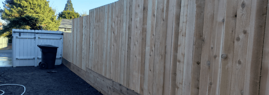 There were a lot of things about this job I found unique and special. One, I love the retaining wall. It not only gives the fence more height and allows the homeowner more privacy, it also acts as a barrier for the higher elevation of dirt that lives on the other side and adds some character to the homeowner’s fence.